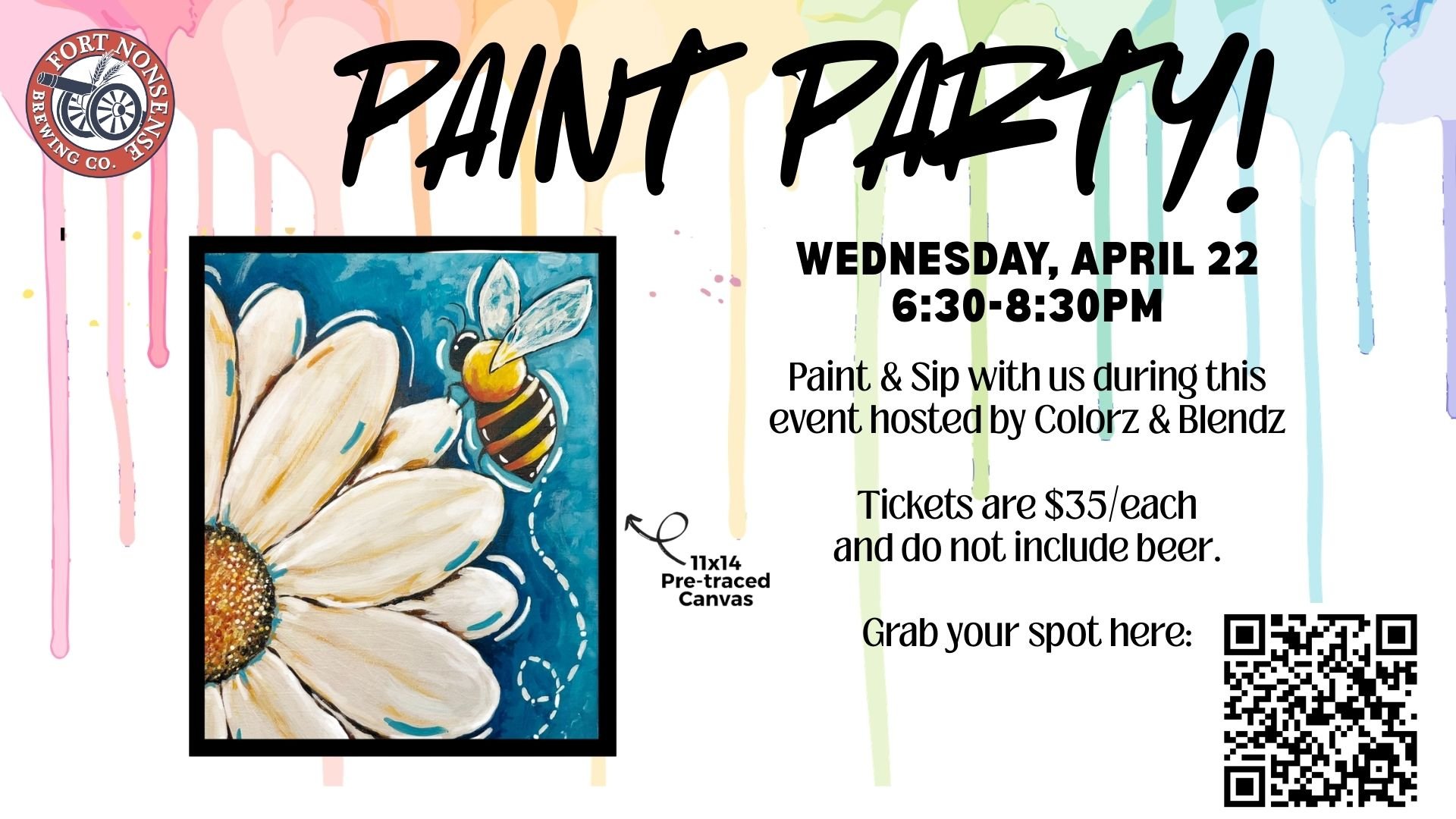 Wednesday, April 22: Spring Paint Party! Paint & Sip Workshop $35/canvas, 6:30-8:30pm. Tickets here.