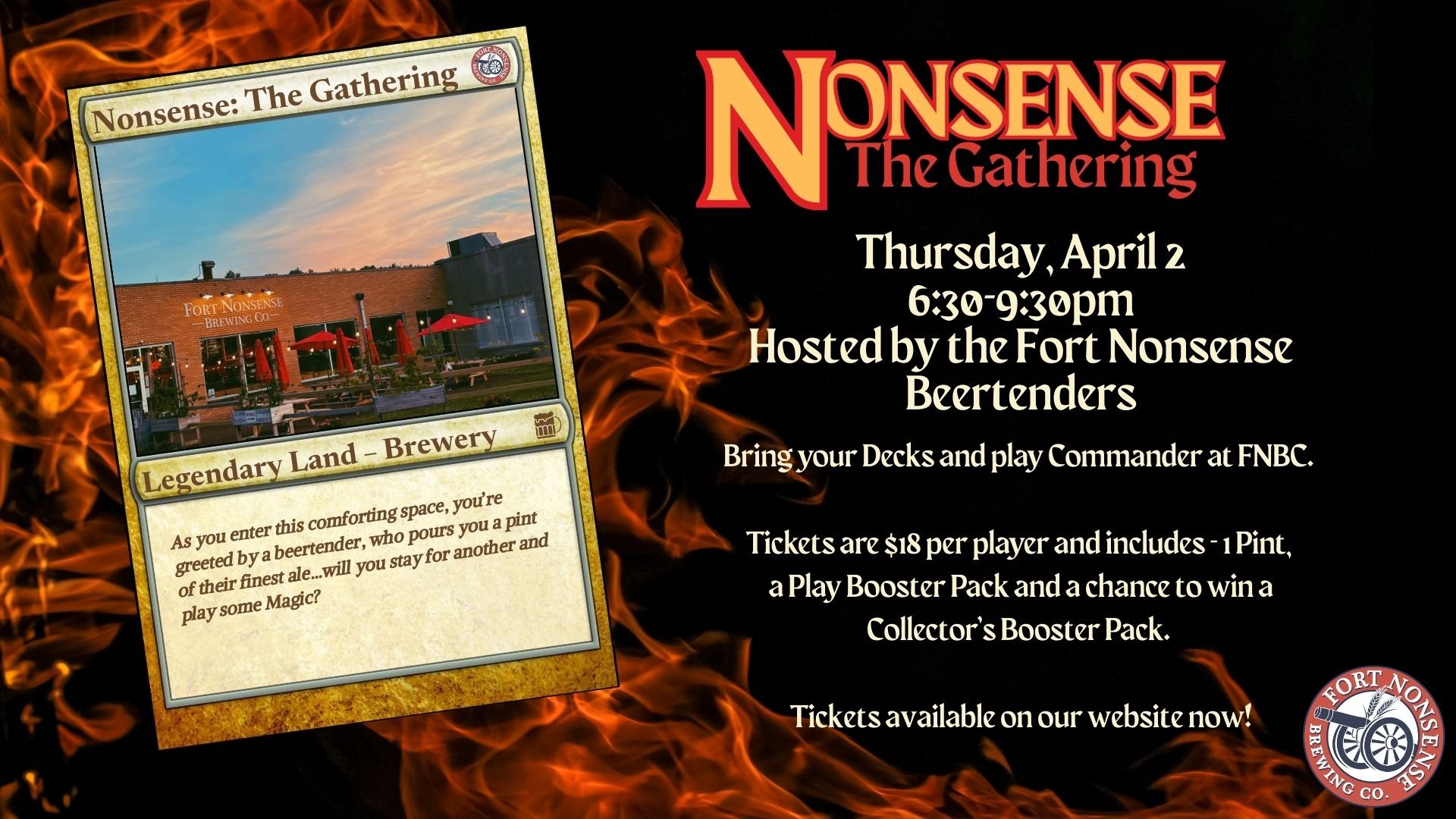 Thursday, April 2: Nonsense: The Gathering (Magic: The Gathering) Commander Night, 6:30-9:30pm. Tickets and info here.